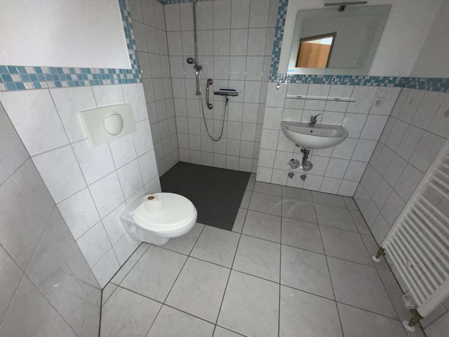 - Badezimmer mit bodentiefer Dusche