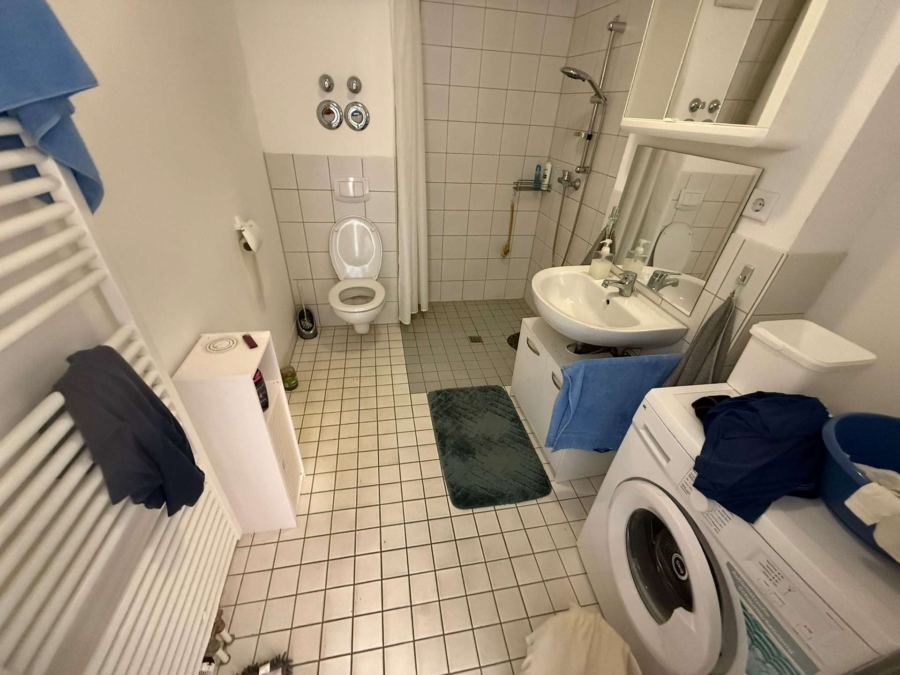 - Badezimmer mit bodentiefer Dusche und Waschmaschinenplatz